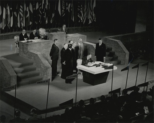 1945年6月25日《联合国宪章》通过,次日51个国家的代表签署了《联合国宪章》。1945年10月24日《联合国宪章》正式生效标志着联合国正式成立。这时联合国成员国包括14个欧洲国家、12个北美洲国家、10个南美国家、9个亚洲国家、4个非洲国家、2个大洋洲国家。这51个国家被称为创始会员国。二战后殖民体系的坍塌使一大批亚非拉国家摆脱殖民统治实现了民族独立。这些国家往往在独立后就争取加入联合国。
