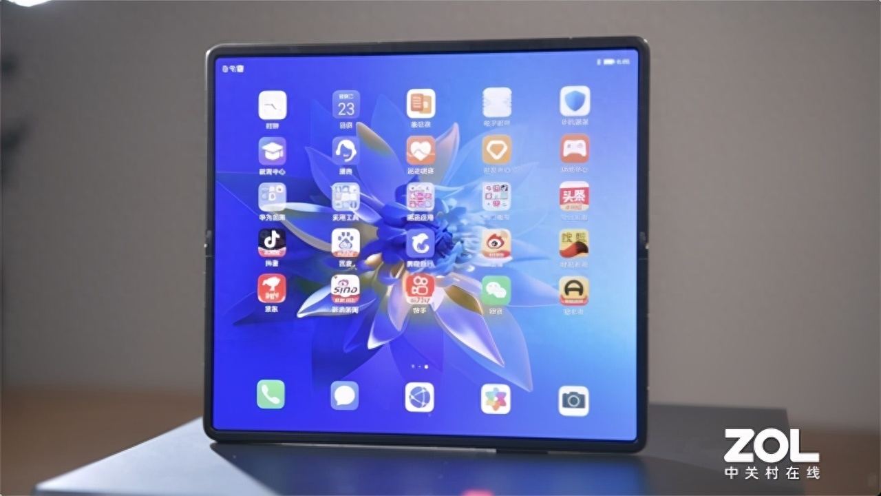 和前代一样,Mate X2依旧配备了一块超级大屏,展开后的视觉效果绝对是传统手机所不能媲美的。除了此前提到近乎无折痕的观感外,这块屏幕还有两个比较显著的优势,一个是首发磁控纳米光学膜,另一个则是8:7.1黄金显示比例。