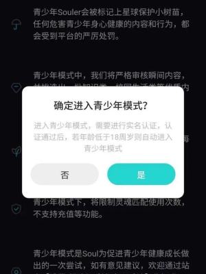 随后,针对未成年人在Soul上聊天浏览的问题,Soul推出了“青少年模式”,该模式下,部分功能使用受限制,例如限制灵魂匹配使用次数,不支持充值。