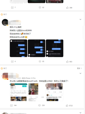 不少微博用户都投诉遇到Soul上的骗子盗图,骗子通过其他人阳光好看、积极向上的健身、旅游、豪车、穿搭照片来伪装自己的身份,打造人设,营造第一印象,以达到欺骗的最终目的。