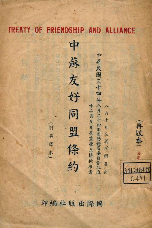 8月14日,中苏终于签订《中苏友好同盟条约》,在条约中,苏联许诺承认中国对新疆和东北的主权,承认蒋介石对中国的领导;