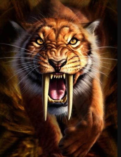 作为大型猫科动物,自然是与猫有一些相似,头圆、耳短,耳背面黑色。不过老虎的毛色多为浅黄或棕黄色,满有黑色横纹。它体型硕大,四肢强健有力。作为主要的战斗武器,老虎的犬齿和爪极为锋利,冰河时期剑齿虎的犬齿令人闻风丧胆。
