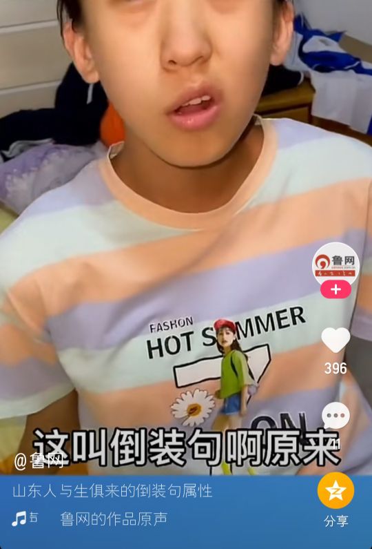最初了解“倒装句”是因为山东人爱说倒装句,后来在某平台刷到一个视频,视频里中小女孩在说倒装句却自己说不是倒装句的视频而引发了大量粉丝热火朝天在下面评论倒装句