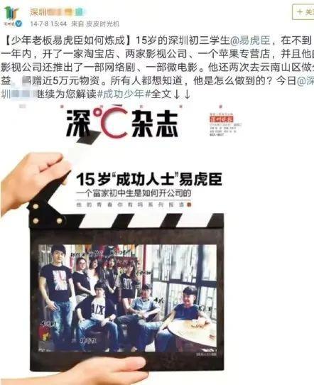 大概是尝到了甜头,易虎臣放弃了学业,开始了创业之路。不仅网店生意有声有色,他还拍戏、开苹果专营店。就连深圳当地的媒体都称他为“少年老板”。可惜好景不长,网店和实体店均因经营不善而倒闭。为了能够周转资金,他频频向粉丝借钱,数额从几千到数万元不等。