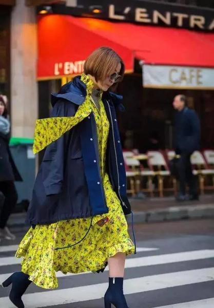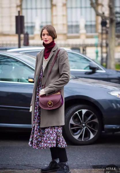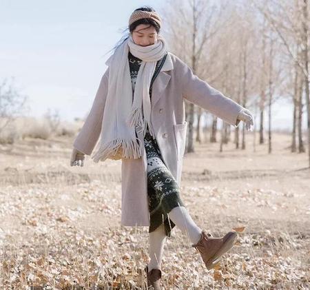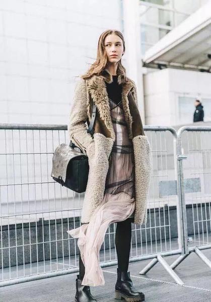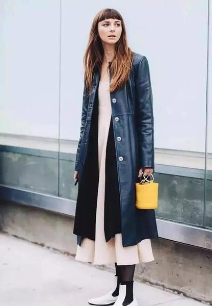 大衣配中长裙最适合不过了优雅又时尚。不用担心不好看,秋冬季节在大街上有很多女生都这么穿!中长的裙子搭配靴子和加绒的高筒袜子其实穿起来比裤子更保暖。裙子又能凸显女性的魅力!