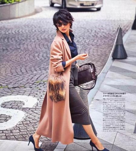 灰色的包臀中长裙搭配驼色的大衣利落的时髦感,自信女人的味道!