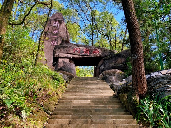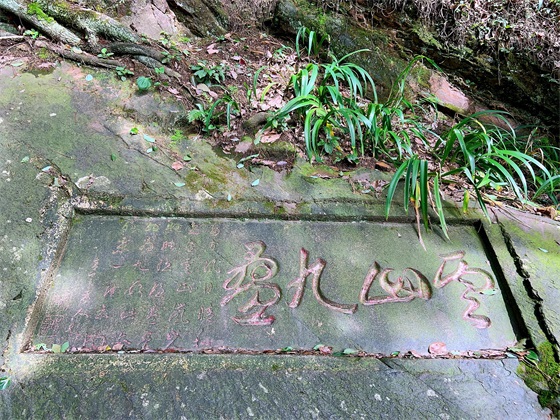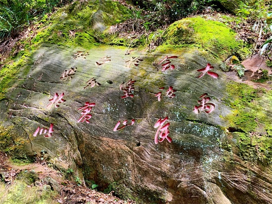 随着林区小路依山而上,没过多久,就可以来到经过摩崖石刻,看了一下相关介绍,此片摩崖石刻是历代文人墨客留下的墨宝,其中以当时国民政府主席林森留笔最多。