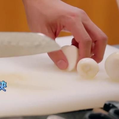 4、再下开水、芋儿块炖煮。