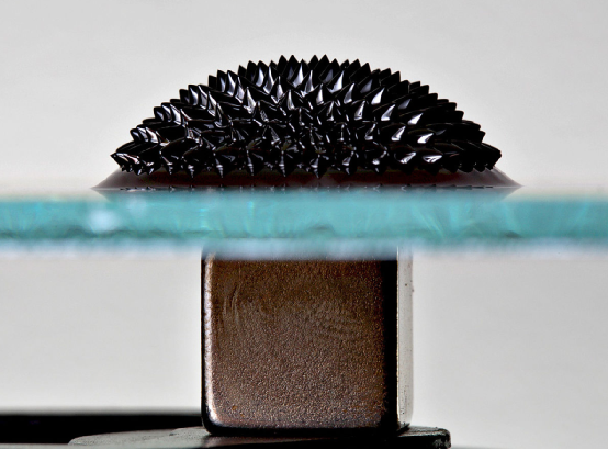 感受到在玻璃下方的磁铁所产生的强烈磁场,在玻璃上方的铁磁流体,会显示出正常场不稳定性。图:Gregory F. Maxwell
