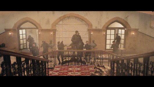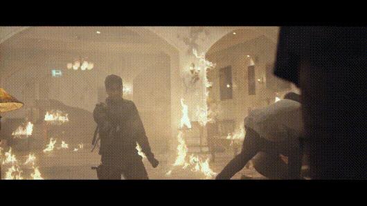 然后主角把队友甩掉,一马当先冲过去,暴徒子弹“长眼”,上演人体描边,枪林弹雨纷纷避开主角所在。