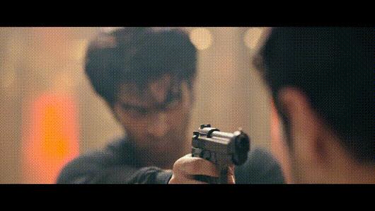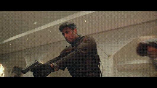 最后一名恐怖分子也终于想起:我不是有枪吗?结果主角“正义眼神”一瞪,暴徒被“正气”吓到了,又继续“讲武德”没有立刻开枪。