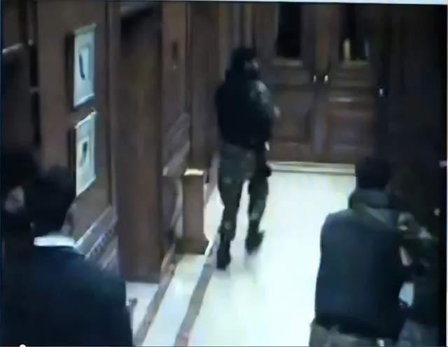 (恐怖分子持枪走出卫生间的一幕恰好被不远处一名在摆弄相机的摄影师抓无意间抓拍到)