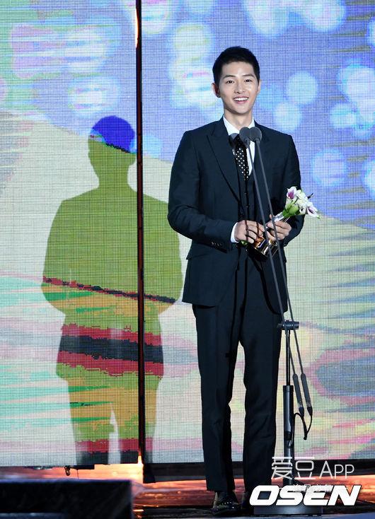 2016年APAN Star Awards,宋仲基和宋慧乔荣获最佳CP奖。那一次宋慧乔因为有其他行程而没有到达现场,欧巴一个人领奖也笑开了花。