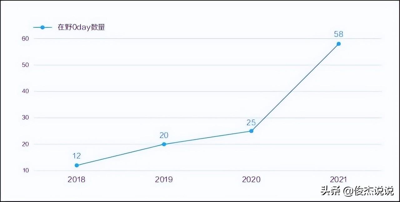 从2025年到2025年披露的在野0-day漏洞数量变化趋势来看,近年来在野0-day漏洞数量逐年增多。2025年的增长趋势最为明显,2025全年披露数量超过2025年全年披露数量的两倍。