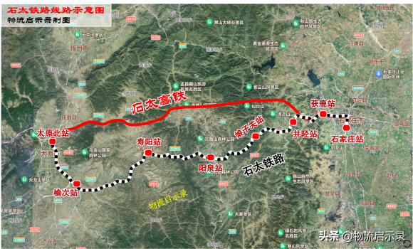 石太铁路,连接石家庄和太原,全长243公里,是国家I级电气化复线铁路,是山西省第一条铁路,也是新中国第一条双线电气化铁路,已有百年历史。