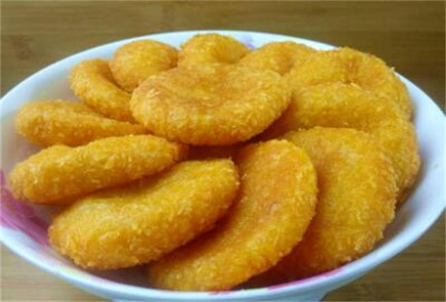 首先在家里面制作南瓜饼要准备食材,所需要的食材也都比较简单,主料当然是南瓜,配料糯米粉,面包糠,
