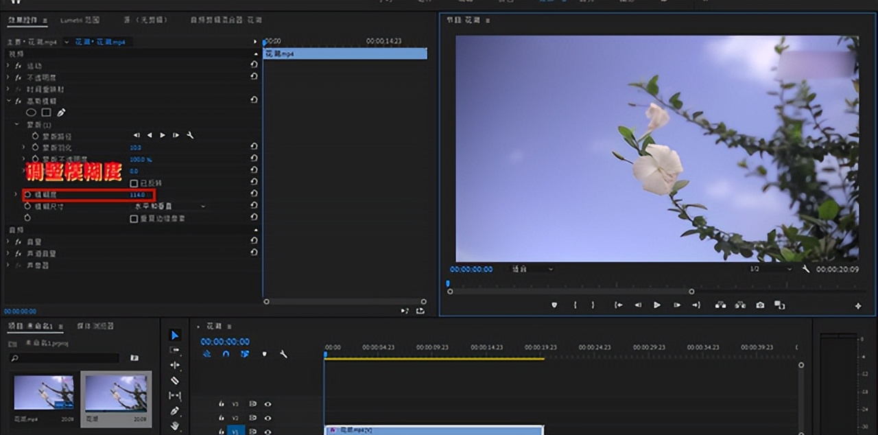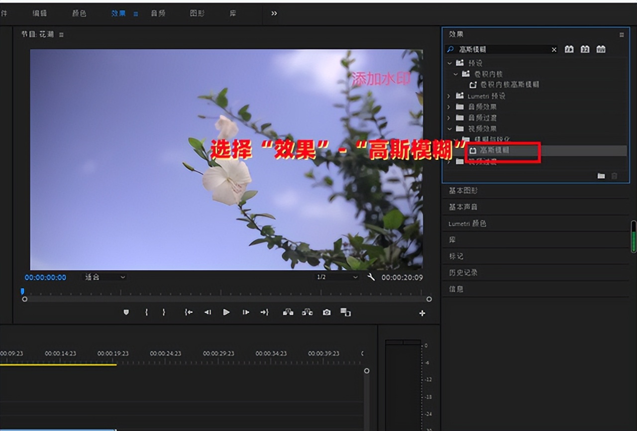 第一步 我们首先新建一个序列,将我们带有水印的视频导入,接下来,我们选择【效果】-【高斯模糊】功能选项。