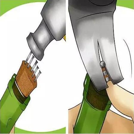 准备好一些钉子,一个扳手,一把锤子,然后把钉子一个个锤入红酒的软木塞中,最后用扳手将那些钉子全部拔出来,这时,就可以顺带将软木塞一起拔出来了,简单又好学。