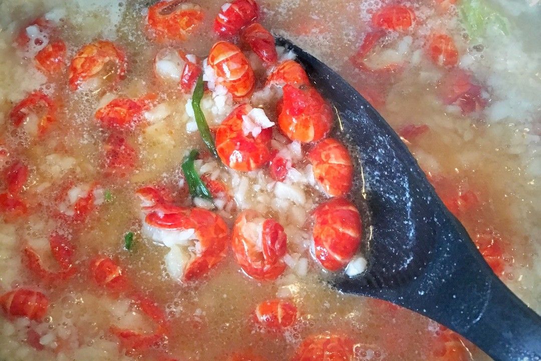 制作方法5、加入煸炒好的龙虾,放入水淀粉和水,搅拌粘稠后,加入生蒜,小火慢炖10分钟