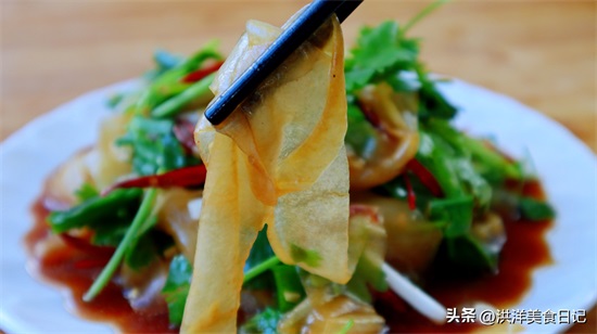 2、拌这道菜一定要让老黄瓜成片状,不要用刀切成丝,以免影响口感。