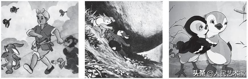 从左至右分别为动画片《小铁柱》《采蘑菇》《好朋友》的剧照