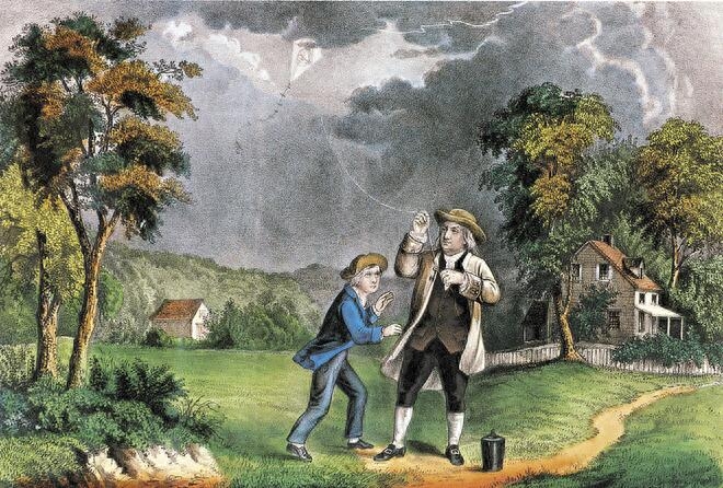 1752年,富兰克林进行了一项科学史上著名的电力实验,并利用电学知识发明了避雷针,成为了人类破除迷信、征服自然的一项重要科技里程碑。
