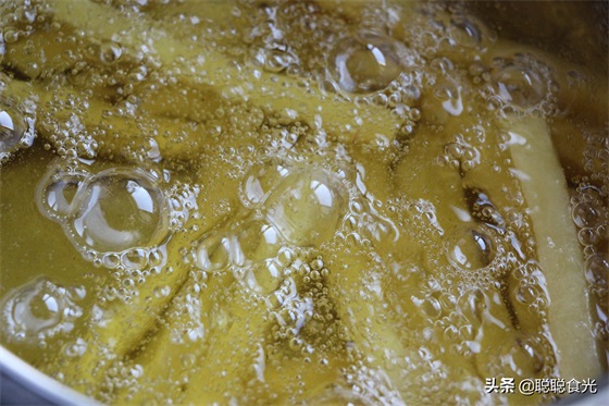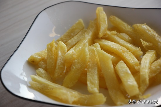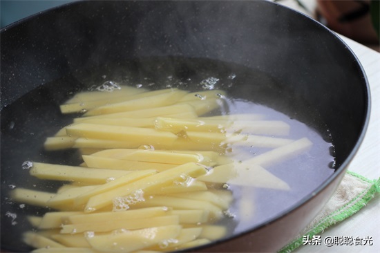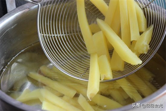 【小贴士】1、薯条切得不要太细也不要太粗,1厘米左右,极不容易折断,也不会炸不熟。