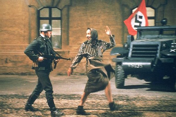 一场催人泪下的战争题材影片,故事发生在二战期间,一家三口被关进了集中Y,但伟大的父亲即使在面对死亡的时候,仍不忘保护自己的孩子,图中父亲用“滑稽”步伐赴死的一幕让人心碎。