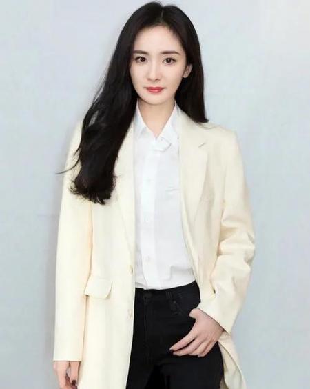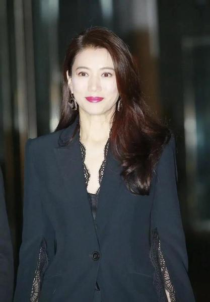 下图,秦岚穿的缎面吊带就比较有女人味和硬朗的西服搭配,正好软硬兼施
