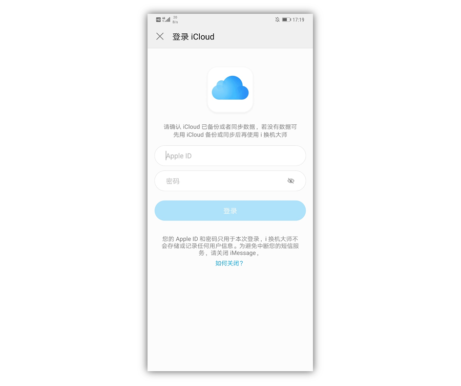注:此方式通过访问iCould数据来实现迁移,需要全程连接数据网络,建议在WiFi环境下操作。