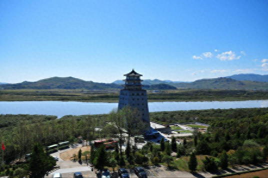 在这种尴尬的情势下,我国政府在洋馆坪修建了宏伟的大堤,大堤主体结构由高出江面2.5米的青石填江砌筑而成,整体布局呈一张弓的形状穿过图们江。它的终点---人称“东方第一村”的防川则位于图们江入海口,是中朝俄三国的交界地带,用“鸡鸣闻三国,犬吠惊三疆”来形容这里简直再合适不过了,可以说去了防川,你就相当于去了三个国家。