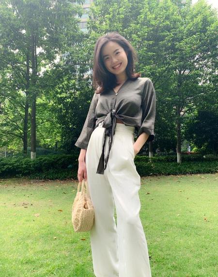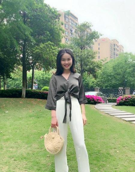 试了很多件,终于发现这件衣服很显胸小腿长,刚好还是休闲衬衫,不同的搭配能穿出不同的感觉。所以我还用了一个度假的包包,毫无违和感。完全看不出70F吧!