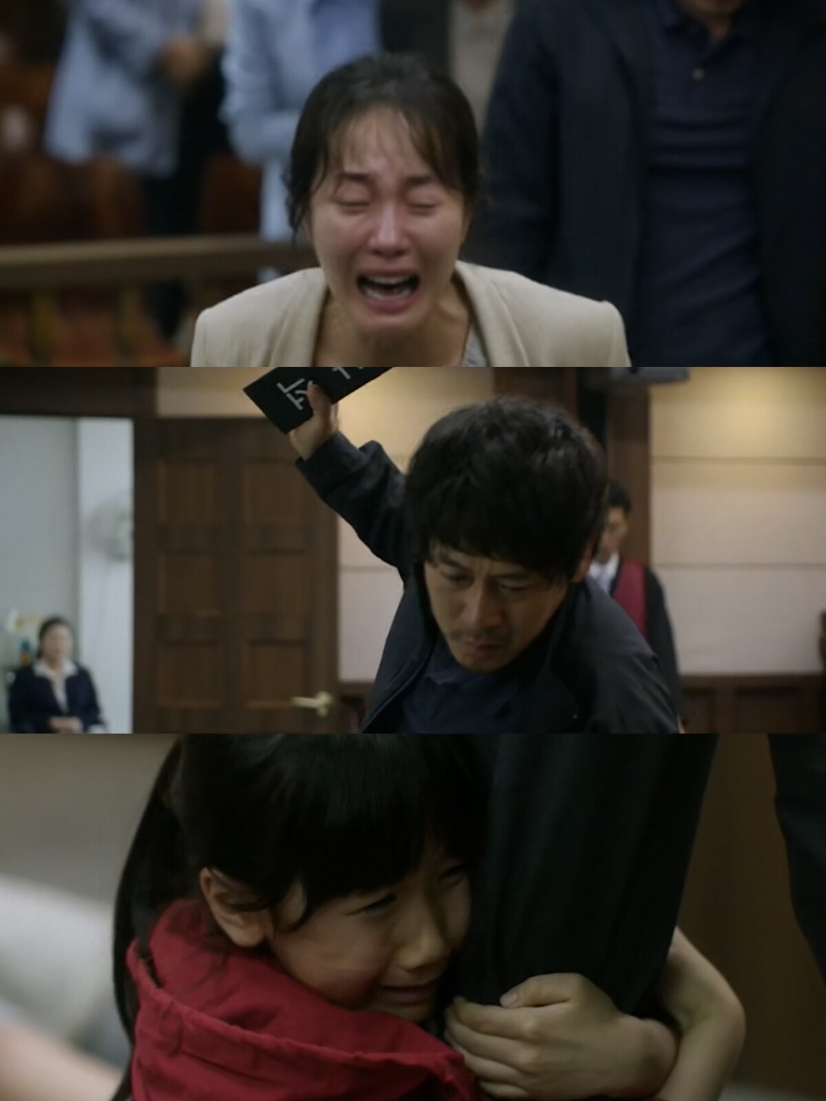 父亲不满法官的判决,在法庭上想杀了那个人,却被素媛哭着拦