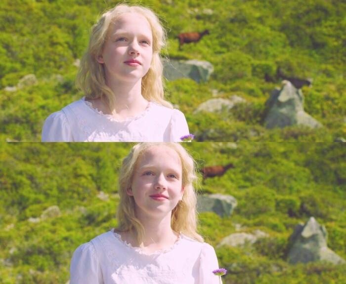 海蒂虽然不是乍一看会觉得很美的长相,但属于耐看型,第一眼见到就被她治愈的微笑吸引啦。克拉拉完全小仙女长相,会让我回想起《爱丽丝梦游仙境》里的白皇后。
