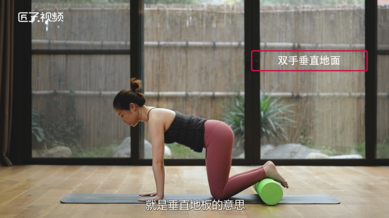 1、准备一个泡沫轴,双手放在前端,两个脚踝搭在泡沫轴上,手放在肩膀正下方;