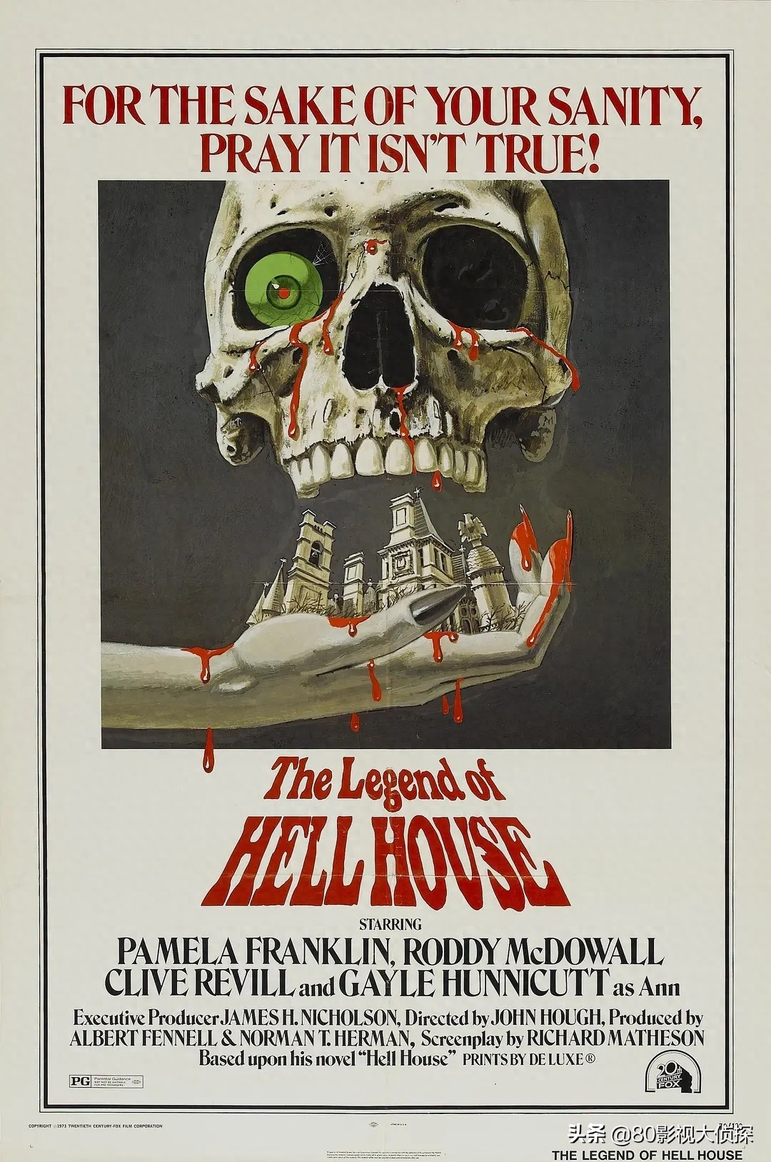 在这部经典恐怖片中,普莱斯扮演的百万富翁Fredrick Loren住在阴暗的公寓里,为他的第四任妻子Annabelle举办了一个晚会。罗伦给5位“客人”每人1万美元,只要他们能在他的鬼屋住上一晚。当然,问题是你必须熬过这一晚。在聚会的开始,安娜贝尔警告客人,她的丈夫是精神病,可能杀害了他的前三个妻子。本片由恐怖大师威廉·卡斯尔执导,高潮发生在地下室,洛伦一边操纵着一具会走路、会说话的骷髅,一边把安娜贝拉吓得不小心掉进了一桶酸里。这部电影充满了鬼屋的陈词滥调,它一定是对这种类型的致敬——或者可能是对它的模仿。