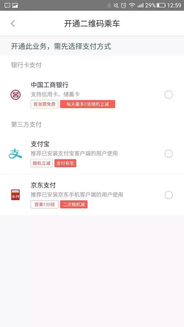 3、京东支付——首次乘车1分钱,第二次随机立减