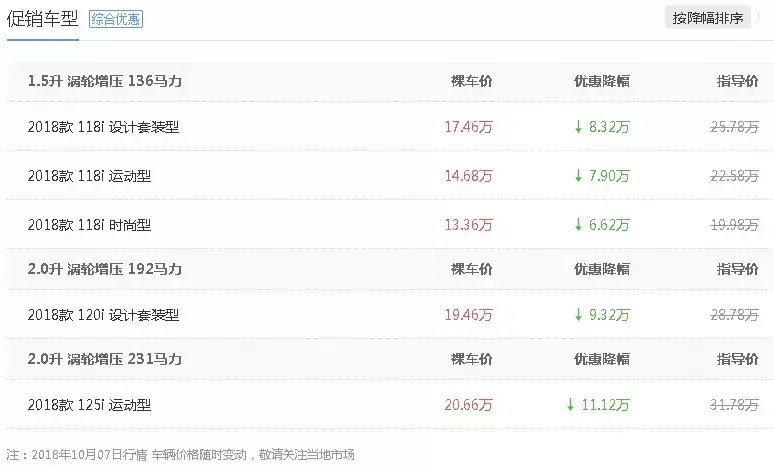 而华晨宝马1系官方指导起售价19.98万元。再加上如今动辄几万元的优惠,入门车型裸车实际售价仅14万元,可以说是与普通品牌汽车价格差不了多少。图为广州市优惠幅度。