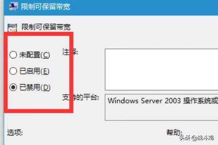 5、最后在弹出来的“限制可保留宽带”页面中,将这项功能禁止使用就可以了。