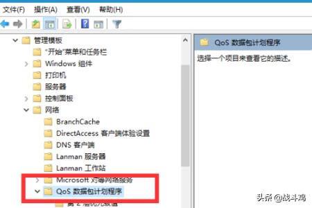 3、接下来,在打开本地组策略窗口后,依次点击“管理模版”→“网络”→“Qos数据包计划程序”,在这里可以对自己的网络来进行设置。