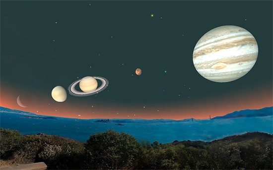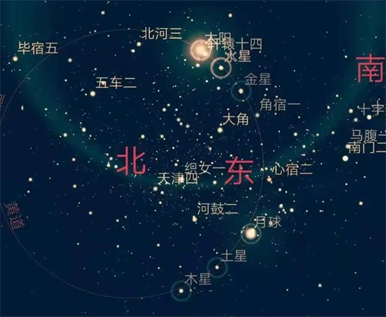 当火,木,金,水,土五大行星同时出现,且大致保持在一条直线上时,这种天文奇观就被称为“五星联珠”。