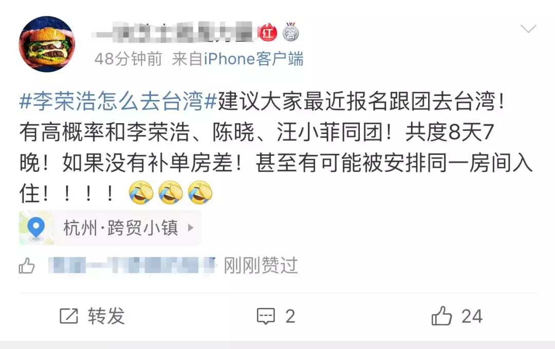 网友们纷纷心疼李荣浩以后去台湾看老婆只能跟团去了。