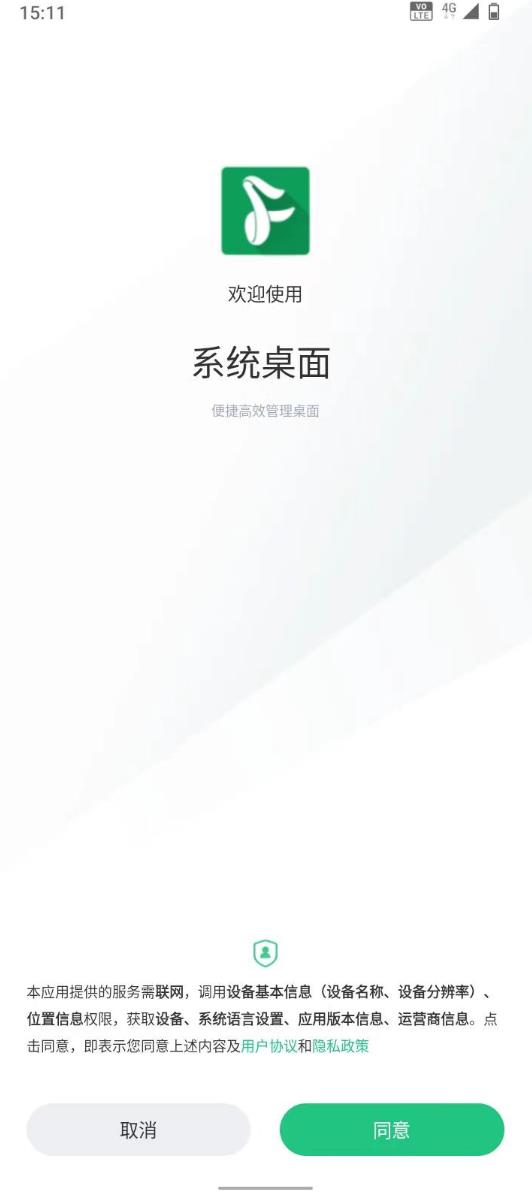 而在使用名为“系统桌面”的 Launcher 时,其提示桌面将会调用“设备基本信息(设备名称、设备分辨率)、位置信息权限,并获取设备、系统语言设置、应用版本信息、运营商信息”。