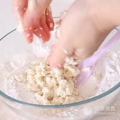 2、嫩豆腐100克,揉成面团。 (各种豆腐的含水量不同,所以需要根据面团调整用量。) (揉到耳垂软度就可以了)