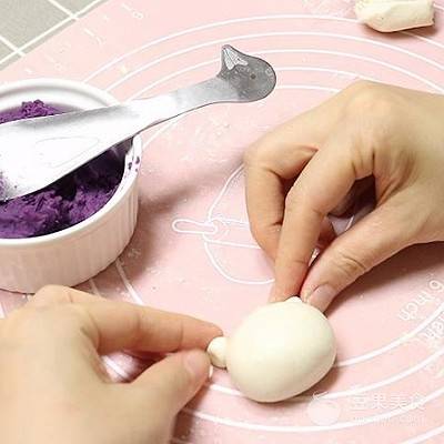 糯米粉 100克奶粉 10克糖 20克嫩豆腐 100克烘焙色素 少许紫薯泥、豆馅 任意