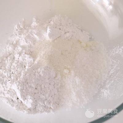 1、糯米粉 100克、奶粉10克、糖 20克,混合均匀。