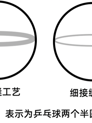 上一段讲了有缝球和无缝球弹性的一些差异性,而这个差异性现在在逐渐缩小,这不得不提到有缝乒乓球的一大生产工艺改革技术革新宽接缝技术向细接缝技术升级!