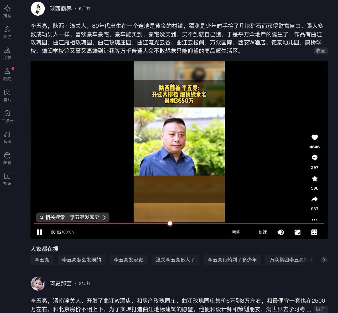 此外,李五亮还拥有陕西金拓置业有限公司的实际控制权,2014年,他捐资3650万元在家乡太窑镇建设文化广场,成为“陕西第一慈善家”。