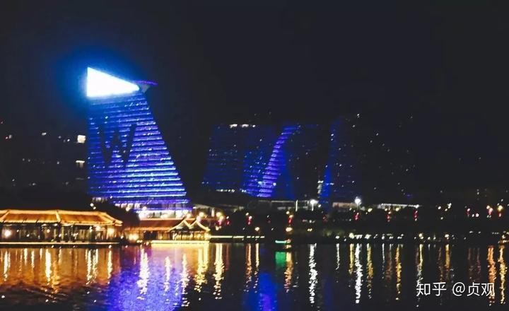 如今每个夜晚,人们都可以看到巨大的酒店W闪耀在半空,流光在湖水里荡漾。