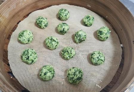 8、因为菜疙瘩是菜比较多,面粉比较少,蒸至的时间八分钟为宜。如果蒸的时间过长,会导致菜疙瘩的颜色没有那么绿。